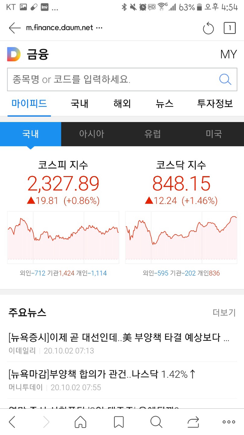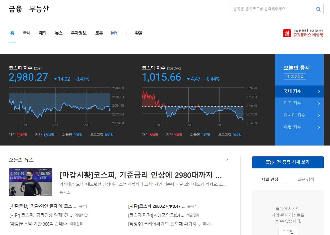 다음 증권 페이지에서는 여기저기 가지 기법으로 증권시세 파악이 아주많이이이데요. 투자를 할 때 매일마다 꼭 체크해야 되는는 것이 있어요. 바로 메인화면에서 볼 수 있는 지수에 대한 것이죠. 국내 지수인 코스피와 코스닥은 필수로 체크해야 해요. 더 나아가 해외 주식에 관심이 있으면하는 미국 지수, 아시아 지수, 유럽 지수도 챙겨 봐야 합니다.