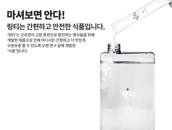 링티는 물에 타서 마시는 무카페인 스포츠 음료입니다. 군의관 출신의 사람들이 열탈진이나 열피로를 체험하고 있는 군인들을 위해 개발한 제품으로, 빠른 수분 보충과 피로 회복에 도움이 됩니다 하고요 링티는 '링거’와 '티’라는 단어가 합쳐진 이름으로, '마시는 링거액’이라고도 불립니다.