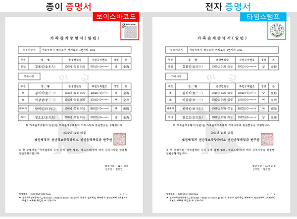 가족관계증명서는 개인의 신분관계를 증명하는 용도라고 보시면 되어지고 있는데, 발급대상자 기준으로 직계 3대에 대한 이력이 적혀 있는 서류이고요. 본인이 직접 내방해서 발행받을 경우 부모와 본인 그리고 자녀가 있을 경우 자녀까지 표기가 돼요. 형제와 자매는 표기되지 않는 것이 특장점이예요.