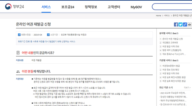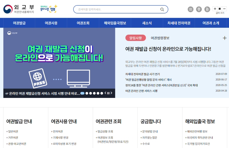 여권에는 전자칩이 내장되어 있어요. 오랜 기간 여행을 하다가 보면 여권의 칩이 망가지는 분위기가 있다고 합니다. 찢어지는 경우도 있으며요. 이럴 땐 여권 재발급을 해야 될지고 있는데, 신규 발급이 아닌 여권 재발급은 온라인으로 신청이 가능해요. 정부 24의 '온라인 여권 재발급 신청' 서비스를 이용하게되면 돼요.