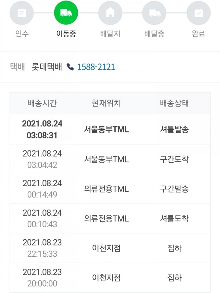 입력을 하실 때에는 각별한 기호는 활용하지 마시고, 숫자만 입력해 주셔야지만 거침없는 택배조회가 가능해요. 입력한 송장번호를 통해 현재 택배의 실시간 스팟을 찾아볼 수가 있다고 합니다. 흔하게 상품 접수-상품 이동 중-배송 출발-배달 완료의 차례대로 이루어지고 해서 현재 택배의 상태가 어떤지 바로 체크가 가능해요.